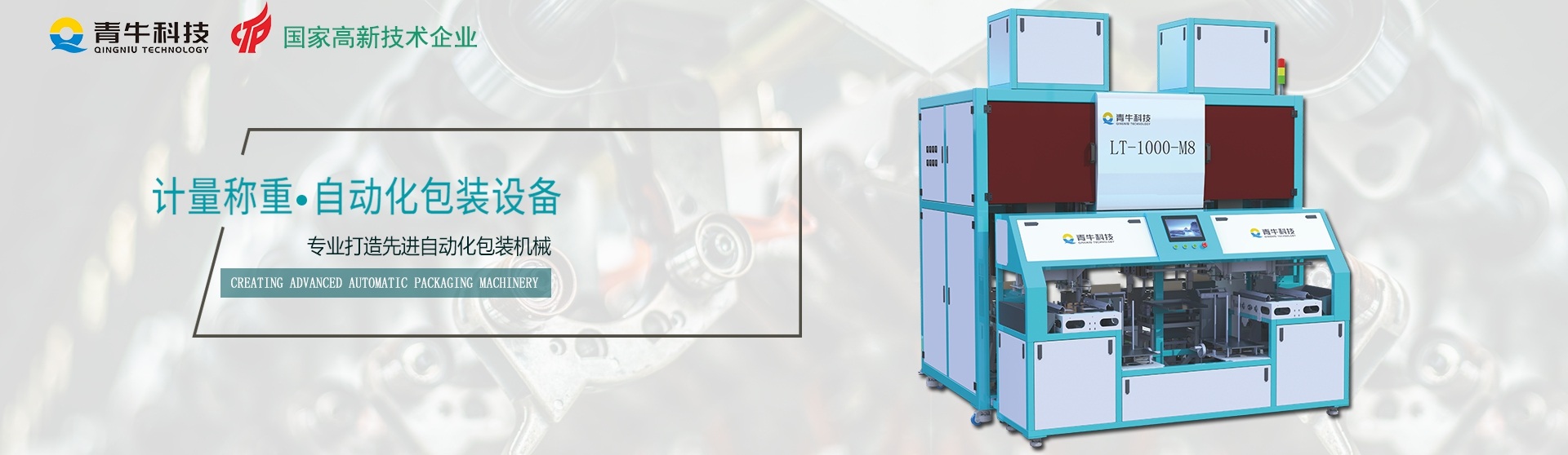 因為專注,所以專業,漳州青牛科技有限公司將專注包裝領域、創(chuàng)造包裝精品、不斷致力于智能化包裝設備的研發(fā)制造,以更智能、高能、可靠的產品來滿足日新月異的市場需求。力爭成為國內包裝自動化技術的領頭者,為我國包裝自動化事業添磚加瓦。